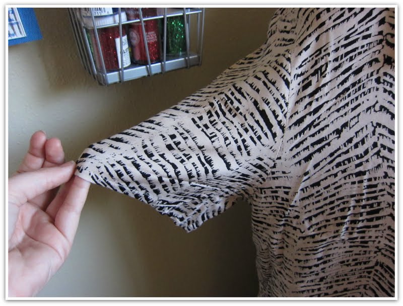 To start, I cut the sleeves and side seams off the top. The front and back of the top were still attached at the shoulders.