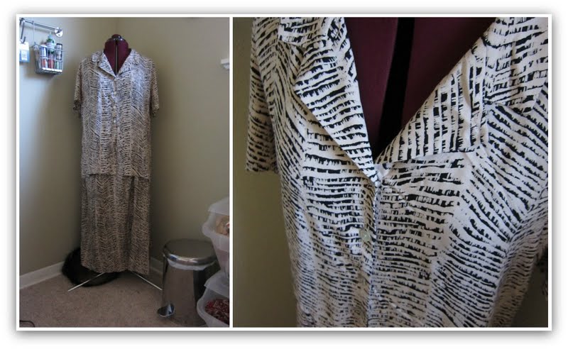 The outfit was way too big but when you are looking for something to refashion, that could be a good thing. The more fabric you can use, the better. Now I don’t often shop at thrift stores (or charity shops as some might call them) not because I don’t want a good deal but I get easily overwhelmed with the quantity of items. That’s ok because sometimes the best restyles can be done with clothes from your own closet that you never wear anymore and need some new life. The one thing that I drew inspration from was the fabric print with the diagonal lines. Rather than deconstruct the garment and start from scratch, I decided to use the pieces of the original and adjust from there.