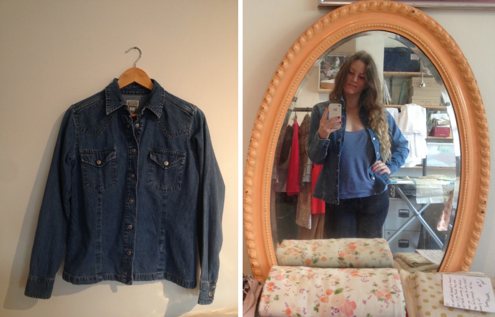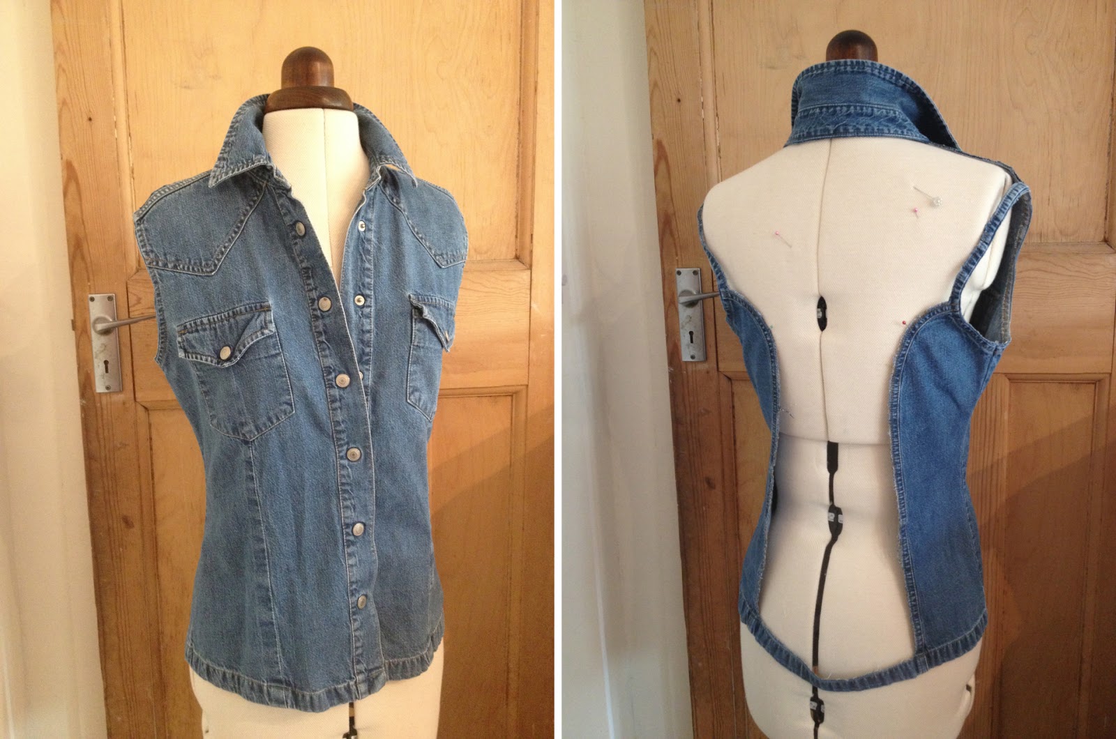 So there you have it folks, one denim shirt becomes one entirely new dress and one refashioned shirt (and just a tiny pile of scraps for the bin). Now all we need is a flight back to Nashville… Anyone?