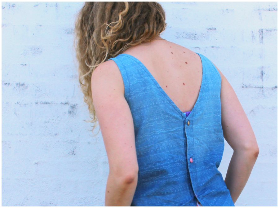 First of all thank you Ingrid for introducing me to a song about a thrift shop, lol! That will be making it’s way onto my Spotify sewing playlist ! I adore that deep v button back. So simple and so effective. Denim shirts are such a classic and refashions from denim shirts seem to look unfailingly cool. Case in point here, right? If it’s any consolation Ingrid…I had a similar “wouldn’t fasten over the butt” situation here. But in the best tradition of refashioning…an apparent obstacle becomes a feature. Because actually, it adds shape and interest and looks better that way than it would buttoned up!